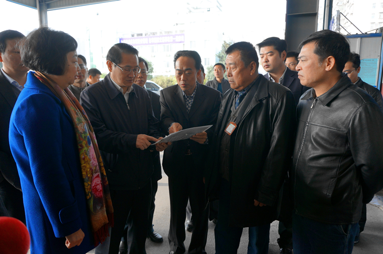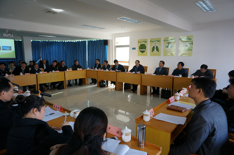 (左二)、市环保局局长王小平(左一)、副局长刘诗题调研检测中心